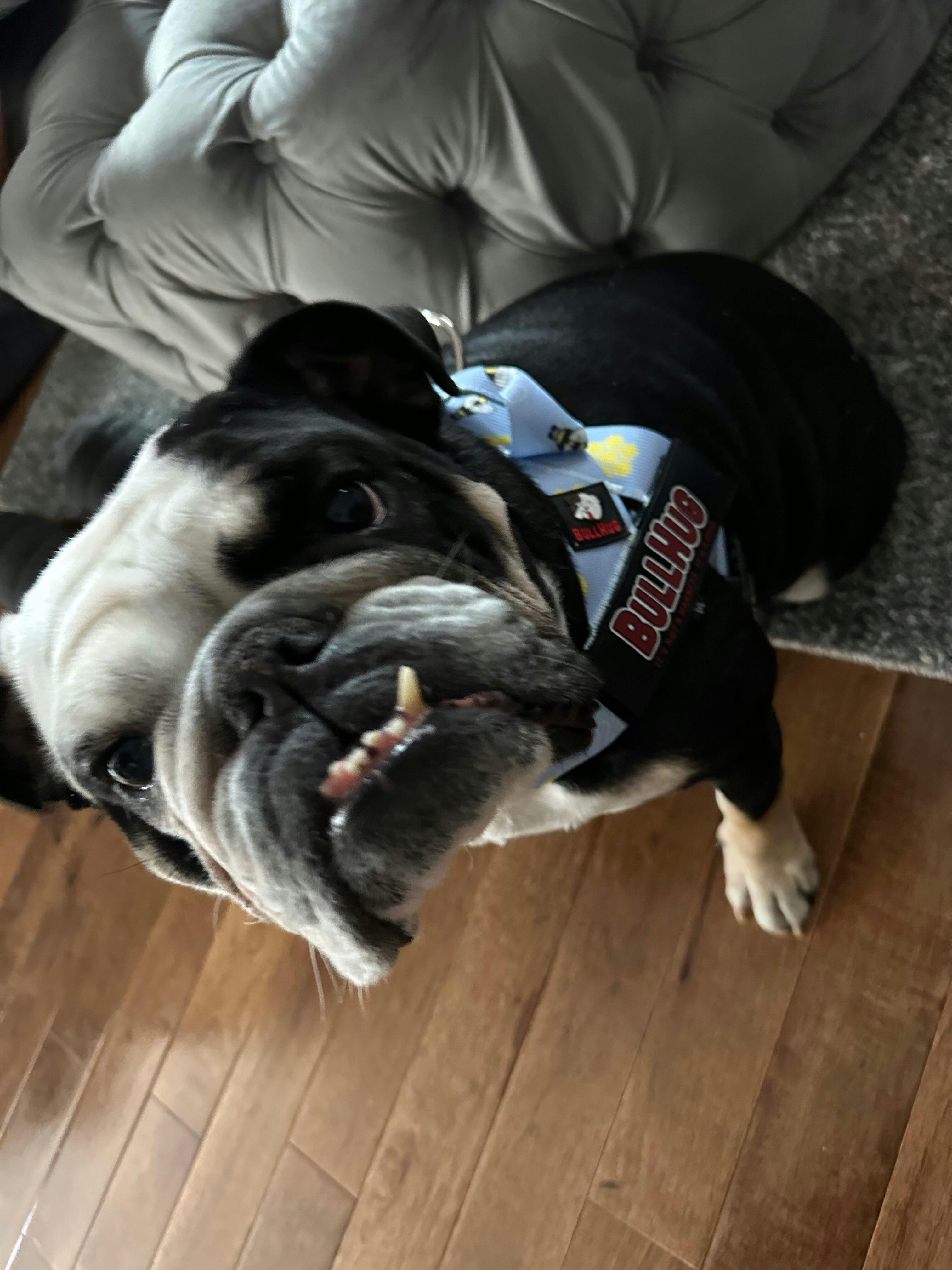We absolutely love Winnie’s Bullhug harness. She’s been wearing it for a couple of weeks now, and the fit is excellent. It’s clearly designed with bulldogs in mind — secure, comfortable, and it stays in place without rubbing or shifting.