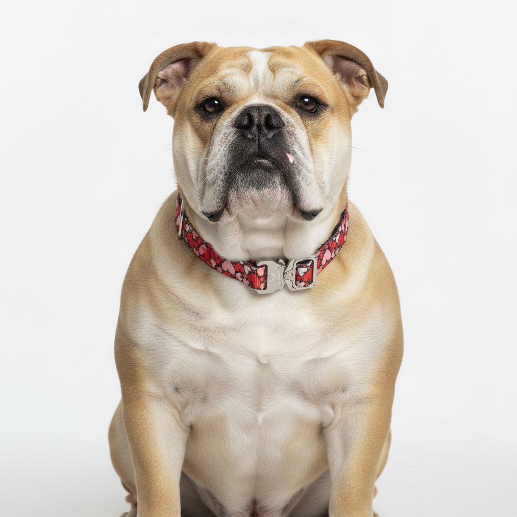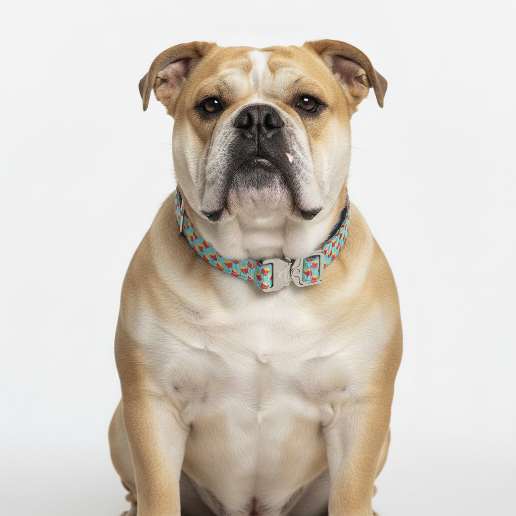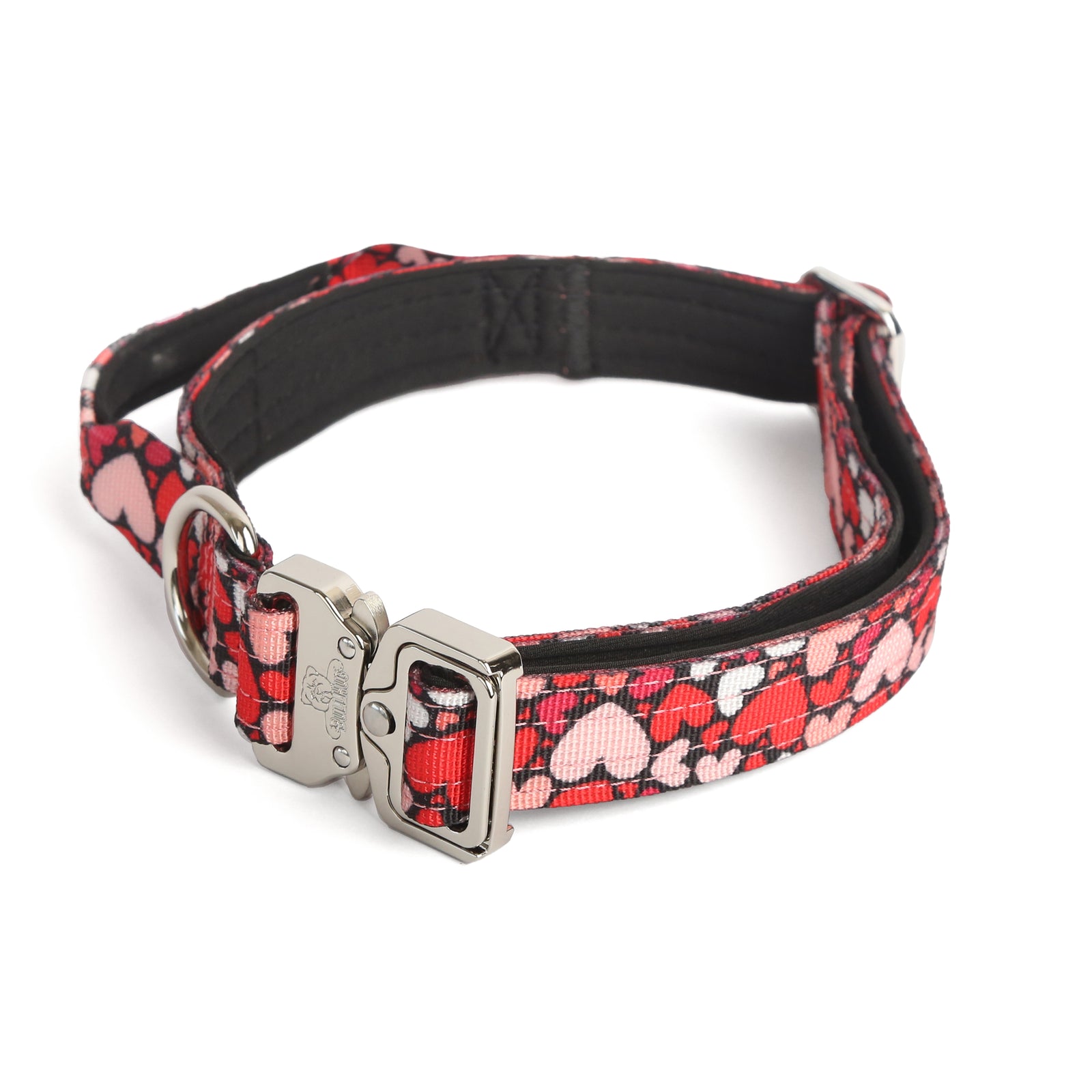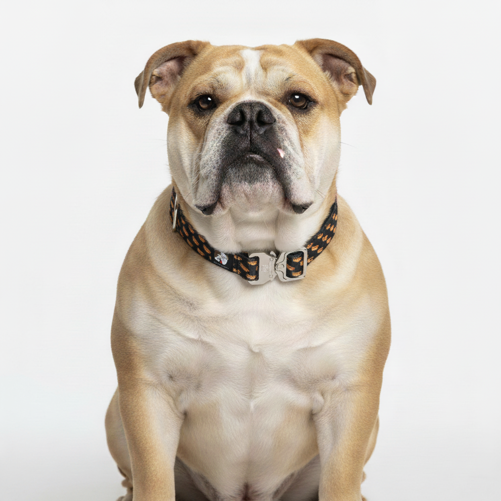 The BullHug Tactical collar features a durable 1-inch custom webbing and a secure cobra buckle for maximum control. The padded design ensures comfort for your furry companion. Perfect for any adventure.