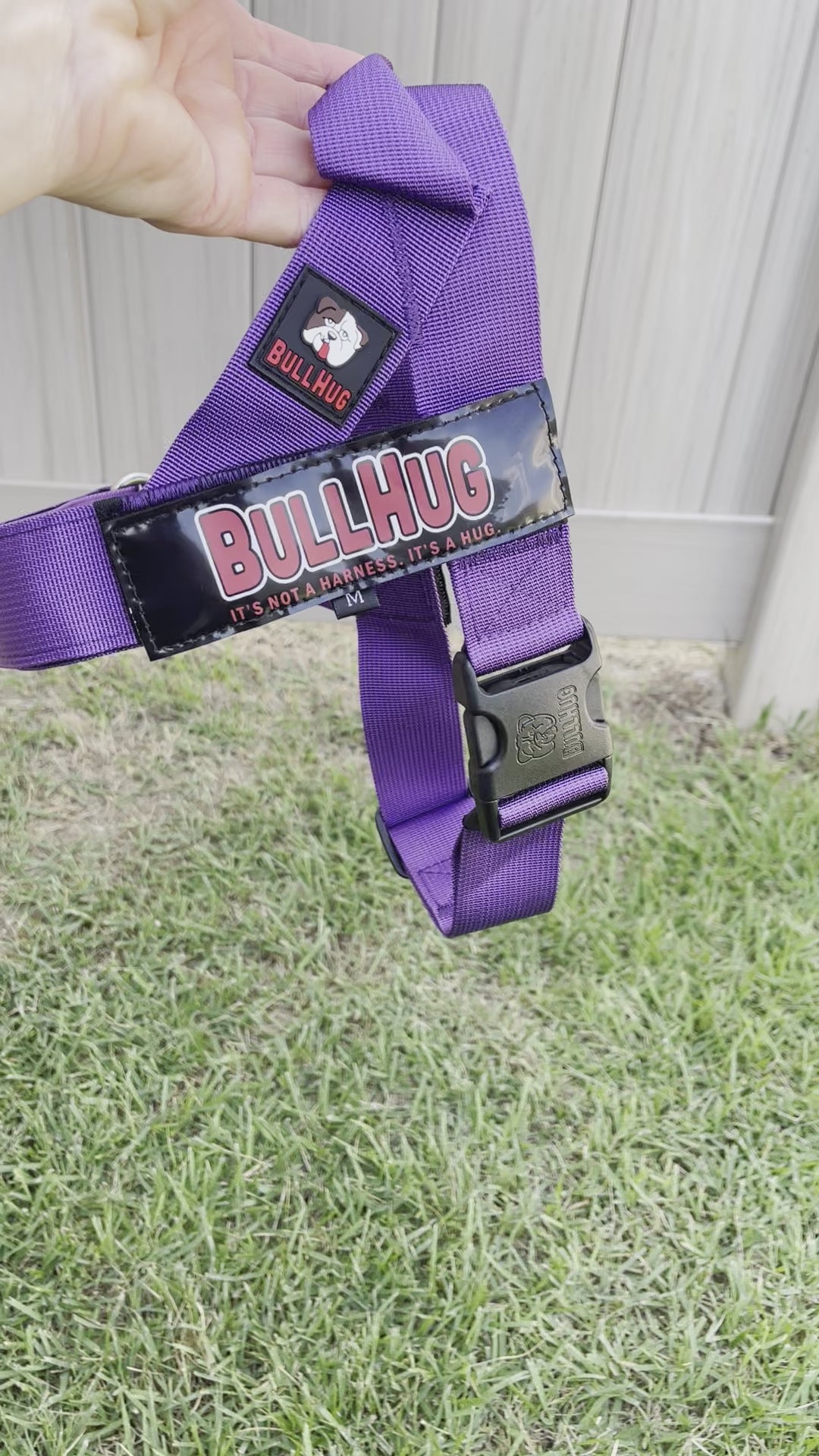 Goes on Easy! Unlike some harnesses, BullHug is incredibly easy to put on your pup. Just slip it over your dog's head, and clasp the heavy-duty fast-release plastic side release buckle.